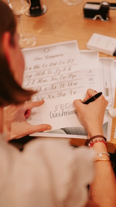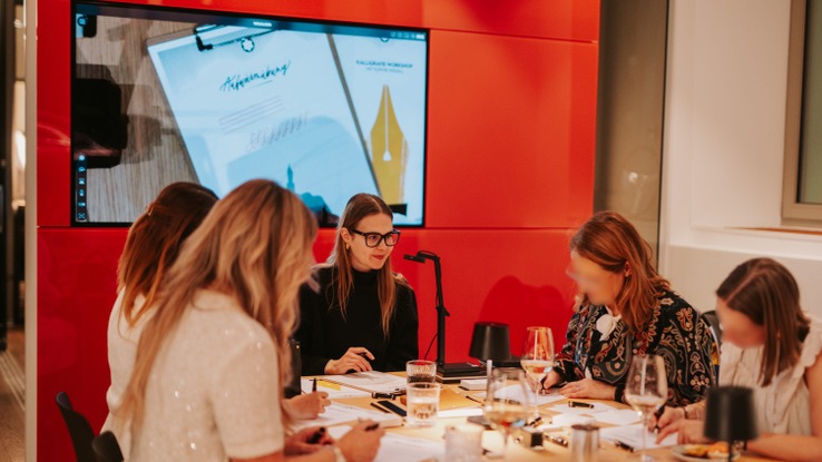 Ein liebevoll arrangiertes Buffet mit weihnachtlichen Köstlichkeiten des benachbarten Cafés Petite Tortue lud zum Genießen ein, bevor die kreativen Workshops ihren Höhepunkt fanden. In kleinen Gruppen gestalteten die Teilnehmerinnen individuelle Adventskränze, während sich der Konfigurationsraum in eine ruhige Schreibwerkstatt verwandelte, in der die Kunst der Kalligrafie von Montblanc auf eindrucksvolle Weise erlebbar wurde.