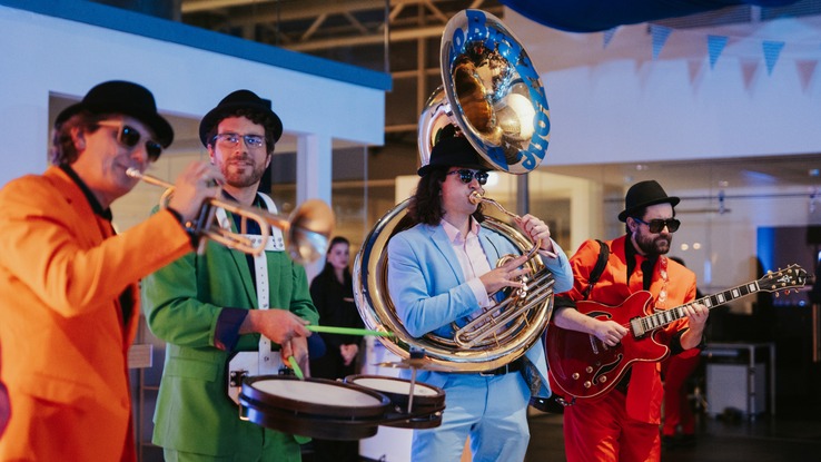 Live-Einlagen der Band Brazzo Brazzone, deren farbenfrohe Präsenz das