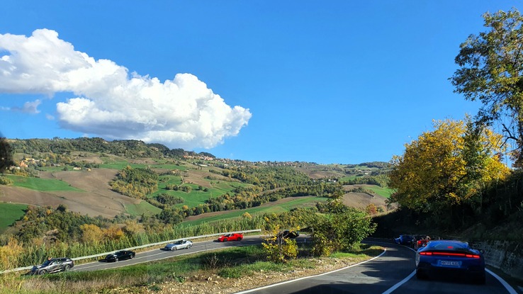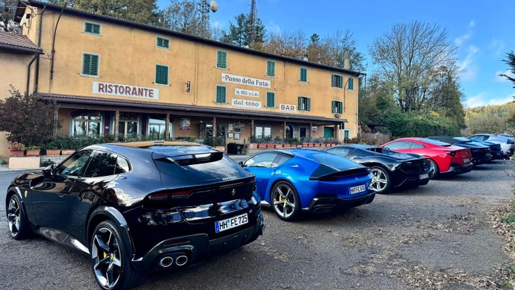 Ausfahrt mit zehn Ferraris durch die Toskana. Die Strecke führte über sanfte