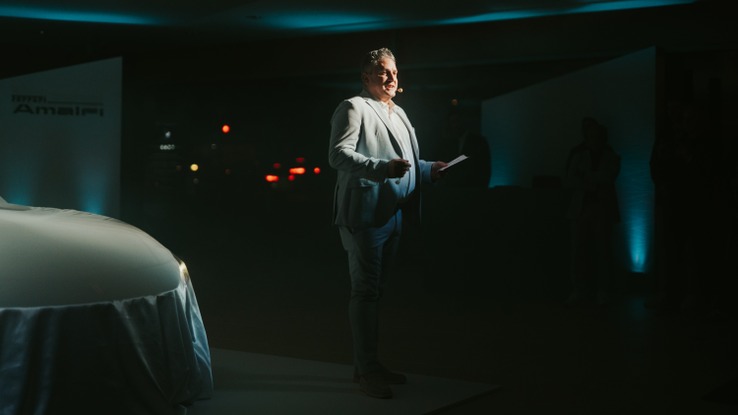 in faszinierender Lichtinszenierung erschien der neue Ferrari Amalfi, von
